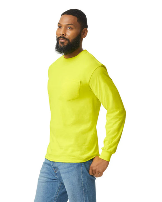 Gildan 2410 Ultra Cotton® Adult Long Sleeve T-Shirt with Pocket (Safety Green)